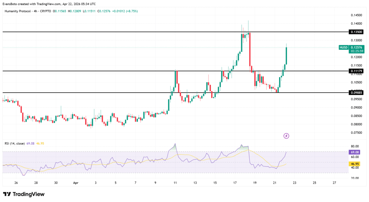 - Humanity Protocol’s downside liquidity between $0.10–$0.11 creates a risk zone if the price reverses.