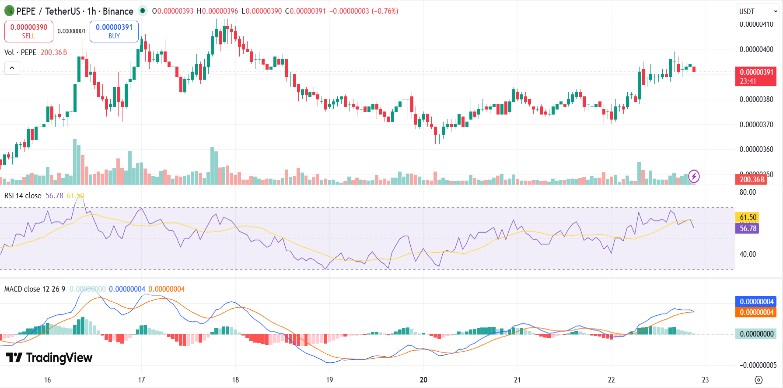 At present, Pepe $PEPE2.88% is trading at around $0.000003920 with a spike of 3% on a daily chart, according to CoinMarketCap. The cryptocurrency currently holds a market capitalization of around $1.62 billion with a daily trading volume of around $437.14 million.