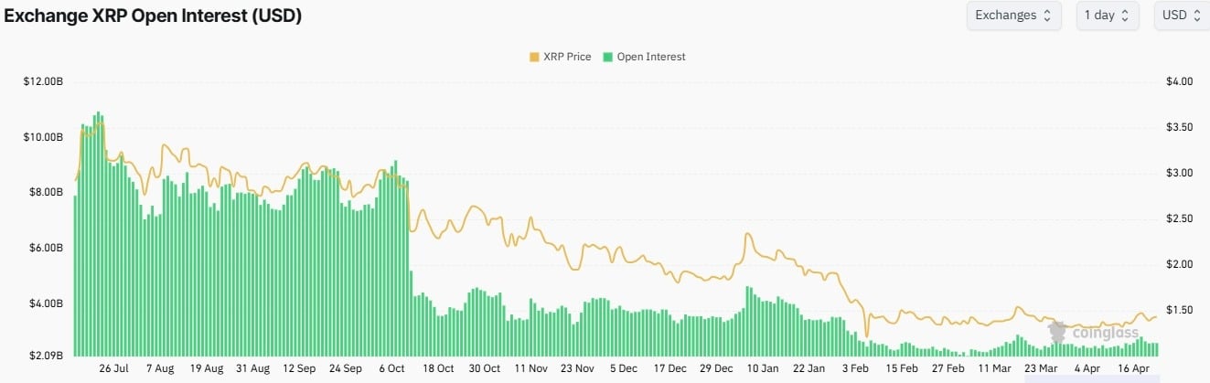 Notably, the token’s Open Interest (OI) – its total open positions across all exchanges – has never recovered since the October 11 crypto crash, as per metrics from CoinGlass.