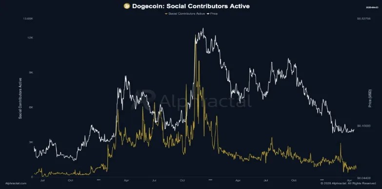 $DOGE, the popular meme cryptocurrency, is up 1.28% on April 23rd to current exchange hands at $0.097. The initial buying pressure follows broader market uptick as Bitcoin holds its position above the $78,000. However, the Dogecoin price gained additional momentum as latest market data showed increased social interactions and contributors for this memecoin, signaling a potential capitation rotation to $DOGE in coming days.