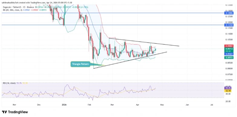 Dogecoin Price Coiling Within Triangle Pattern