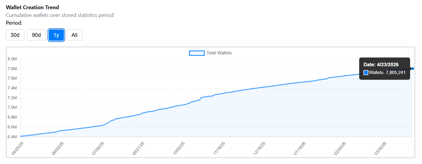 Meanwhile, January saw nearly 95,000 new $XRP wallets, while March recorded just 87,119 new addresses. This month, April 2026, may be on track to witness the lowest increase rate, with just 52,411 new wallets so far. Overall, these additions have now pushed total $XRP wallets to 7,805,241 at press time.