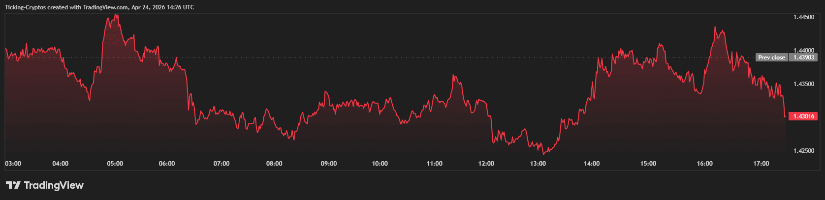 Ripple’s native token continues to trade within a frustratingly narrow range. As of April 24, 2026, the digital asset is hovering around the $1.43 mark, showing a lack of momentum that has characterized its performance for months.