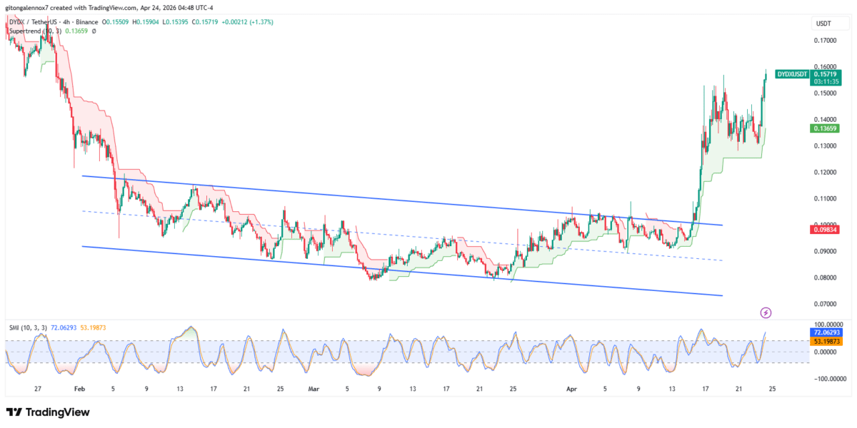 dYdX [$DYDX] is among the best-performing altcoins of the day, with the price gaining over 18% in 24 hours.