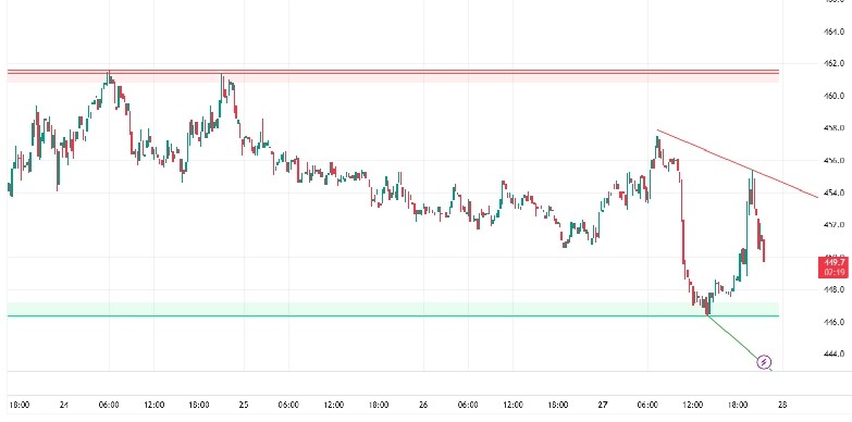 Furthermore, the recent 5.7% weekly gain, though momentarily pared back, shows that the medium-term trend remains skewed to the upside. The lack of a follow-through on the recent dump suggests “sell-side exhaustion.” As long as the $446 support floor remains intact, the technical setup favors the “bulls” who are looking to flip the red descending resistance into a localized floor for the next leg up.