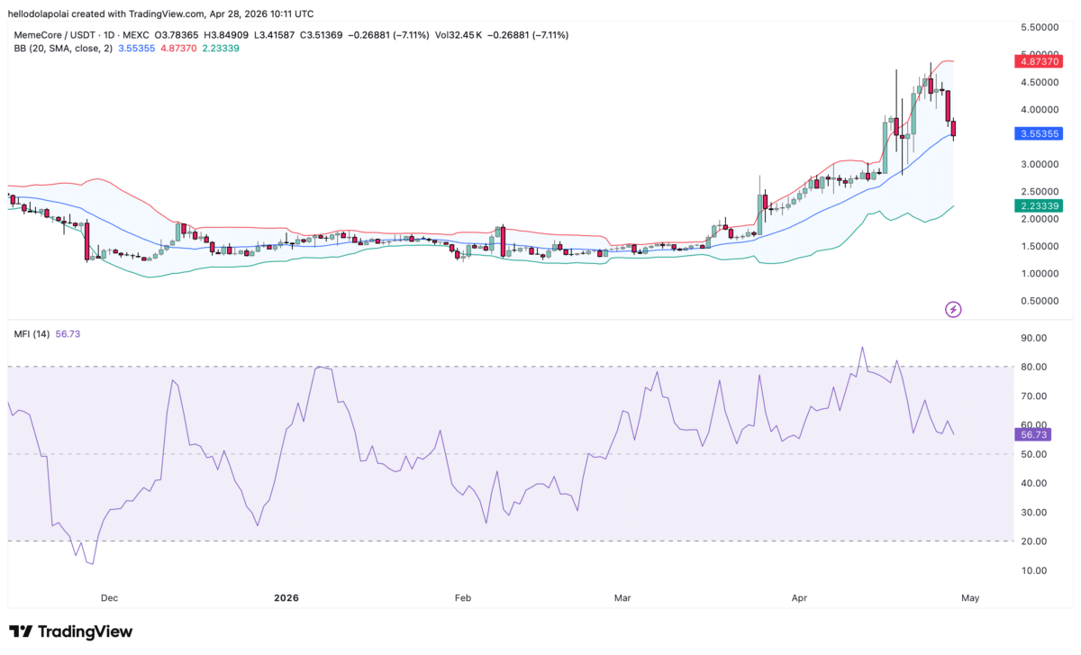 MemeCore [M] continues to face intensified selling pressure, recording a 15% decline over the past 24 hours at press time.