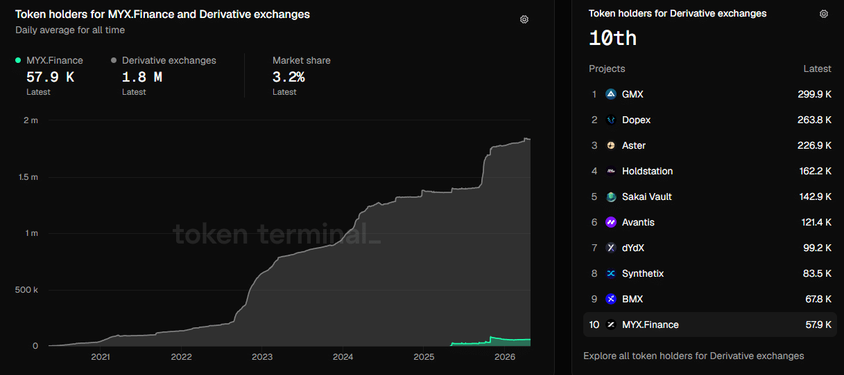 The holder’s behaviour showed early signs of stability. After a brief drop, the share of $MYX tokens held off exchanges began stabilising again.