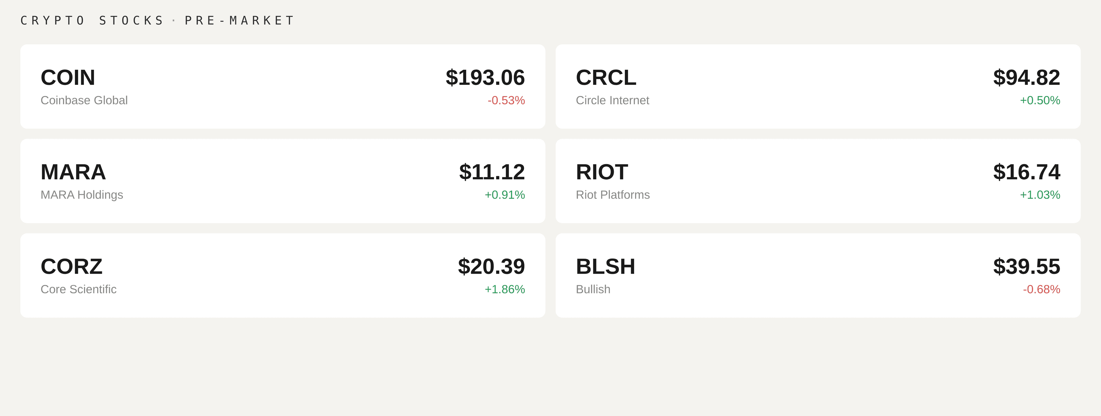 Read more: For analysis of today's activity in altcoins and derivatives, see Crypto Markets Today . For a comprehensive list of events this week, see CoinDesk's "Crypto Week Ahead."