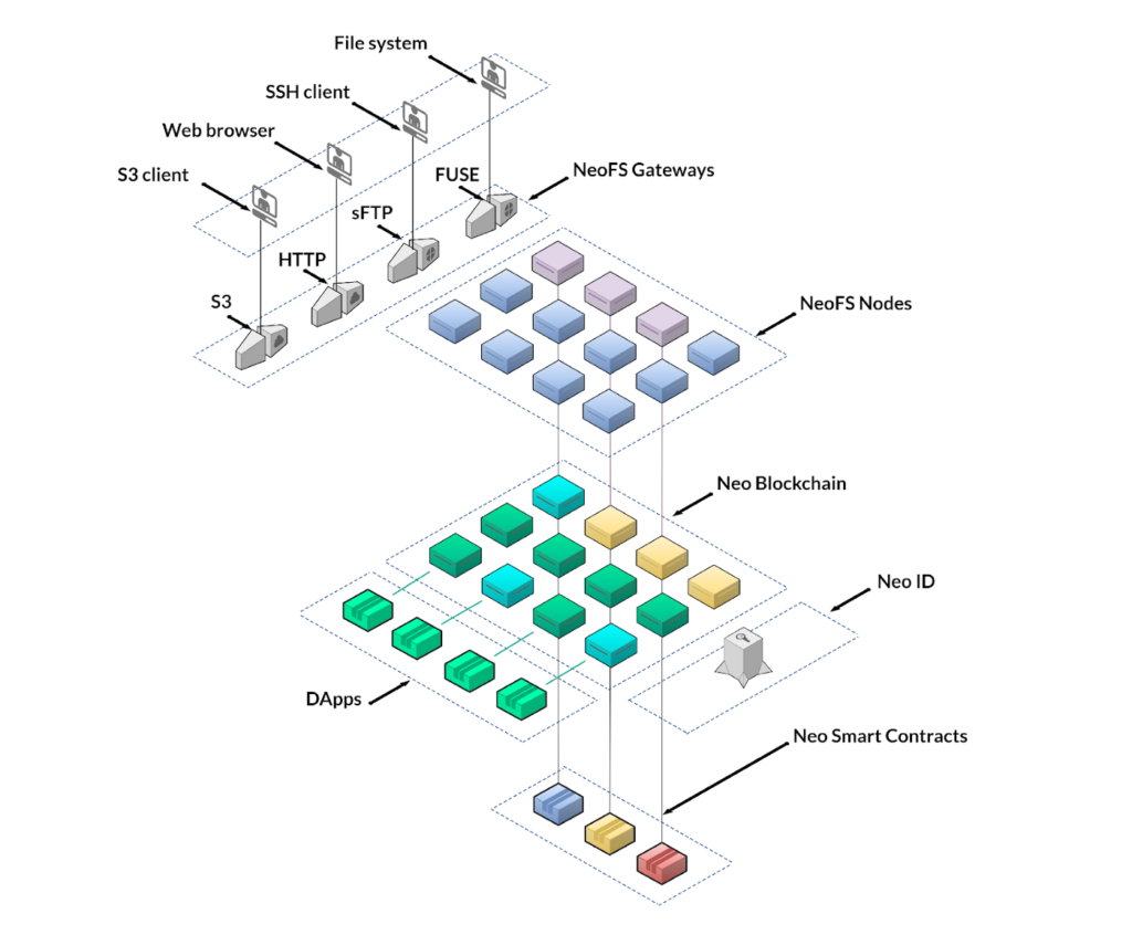 NeoFS is the first of the known decentralized storage networks to attempt to provide this functionality. Following completion of Neo’s native oracle service, contracts running through NeoVM will be able to request and even manipulate data stored off-chain on NeoFS. This can provide a functional alternative to centralized backends while avoiding the need for the high costs and often unnecessary redundancy associated with on-chain storage.