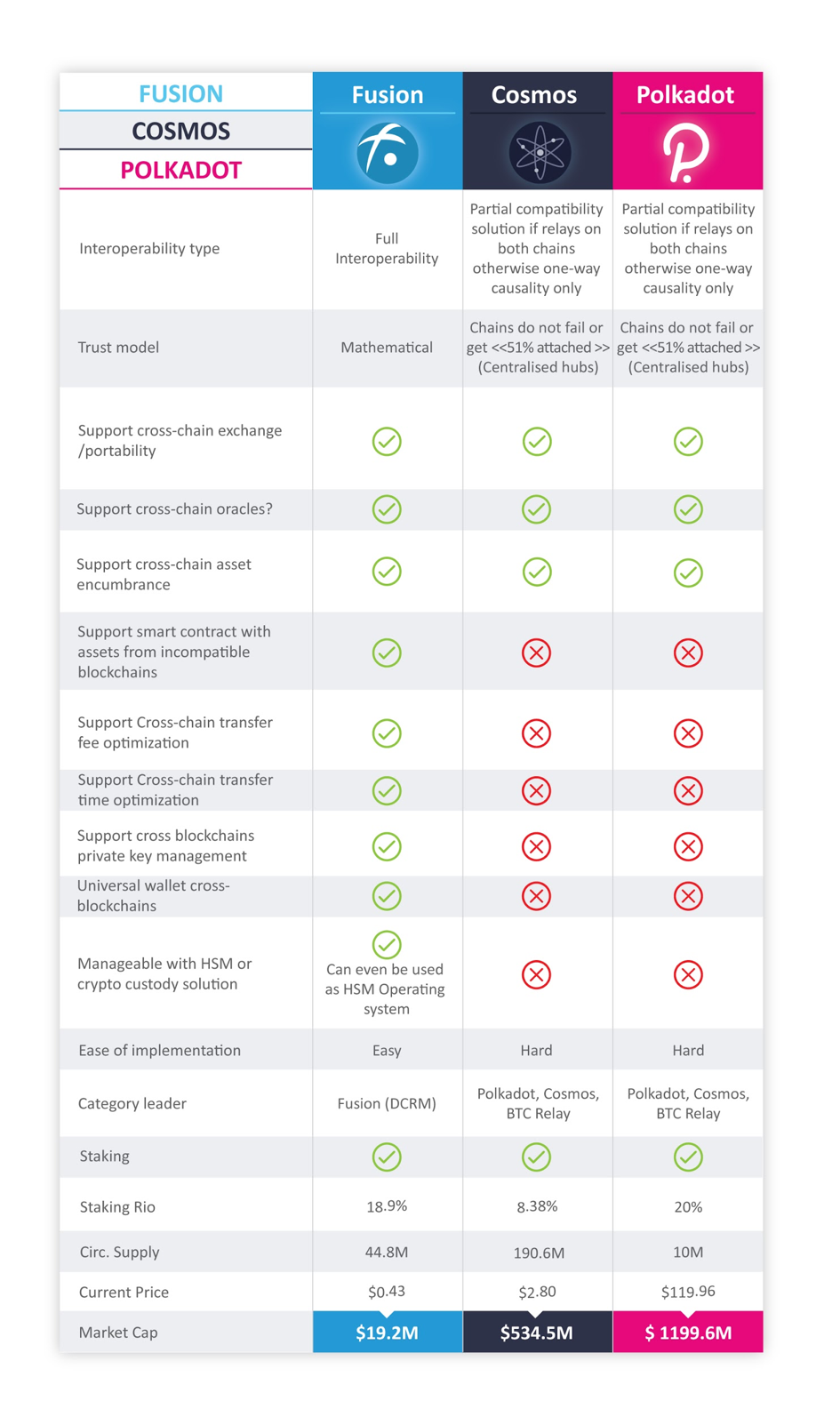 Finally, to an investor who has done some research and compared the current market cap of these projects and the technologies they offer, it should be clear that Fusion has much more upside potential than both Cosmos and Polkadot.