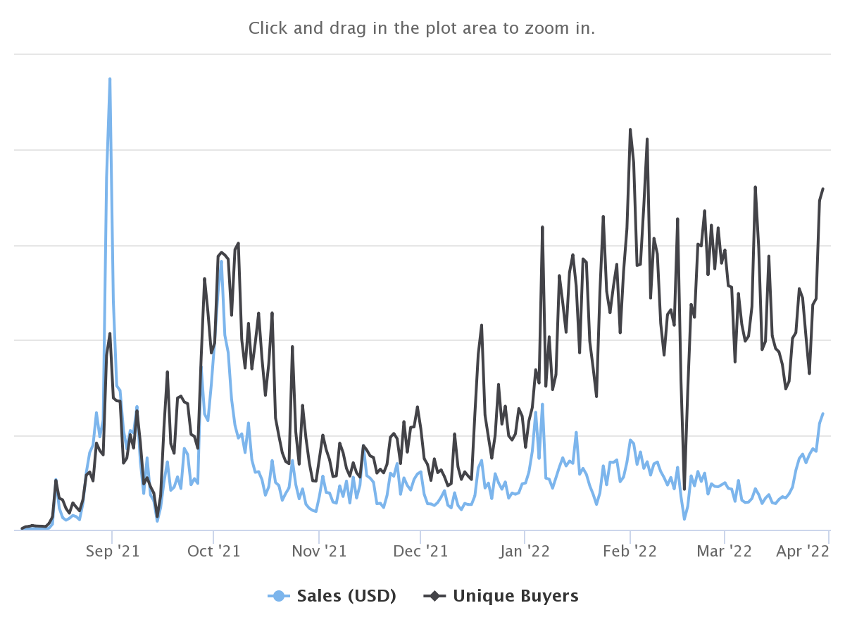 For instance, Ethereum (ETH), the leading smart contract platform that hosts more than 90% of all the NFT volumes, witnessed a decline of nearly 38% in sales volumes in the last 30 days, almost thrice higher than Solana.