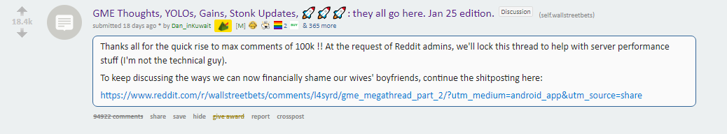 The WallStreetBets community grew from two million users to a staggering eight million, with user activity spiking at market open. The subreddit’s moderators also acknowledged that the increased load from new comments and posts were slowing down Reddit’s servers.