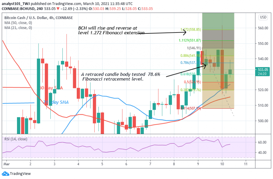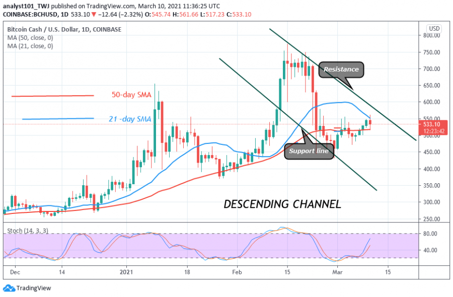 Bitcoin Cash price is stuck below the $550 price level. Today, BCH is retracing after testing the $550 resistance zone. BCH has never traded above $550 high after the February 23 breakdown. The price has been fluctuating between $440 and $550.