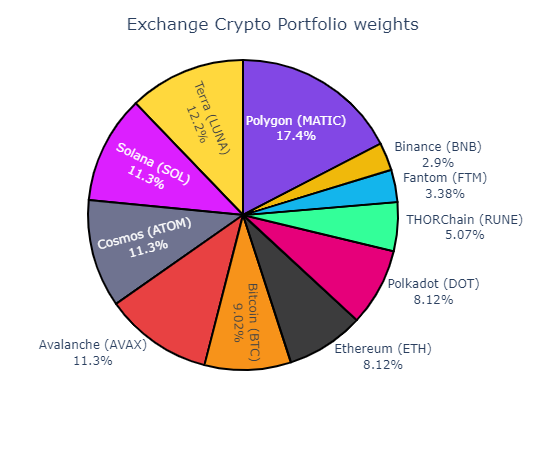 Decentralized cross-chain liquidity protocol THORChain (RUNE) at 17.3% is the final crypto asset with more than a 10% portfolio allocation.