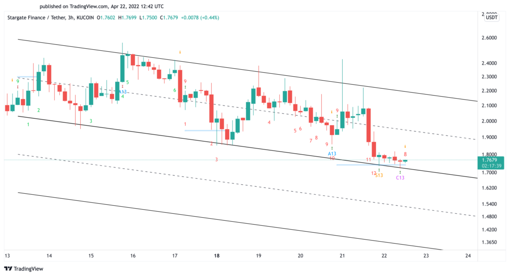 STG lost over 0.35 points in market value after the launch of the staking platform. The downswing saw the token reach a crucial support level at $1.70, which is represented by the lower boundary of a parallel channel that developed in the two-hour chart in mid-April.