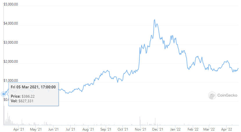 The price of NFTI has increased from $386 on March 5, 2021, to its current price of $1,724, a gain of nearly 350%. During that same period of time, the total crypto market capitalization rose by 30%, providing evidence of the strength the NFT market has seen over the past 13 months.