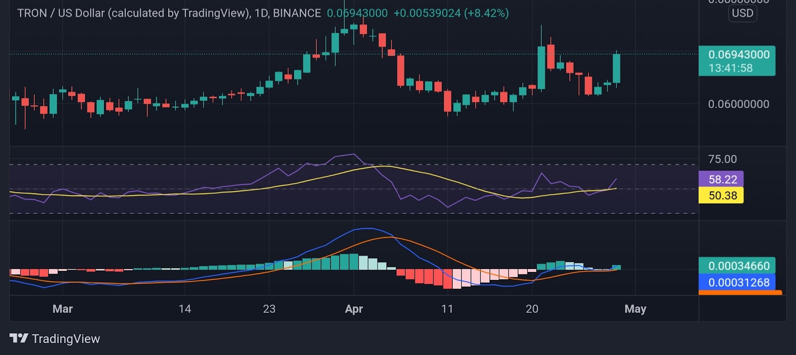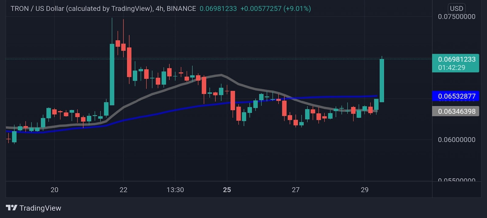 •TRX/USD is currently priced at $0.069 and has increased by 8.68% over the past day