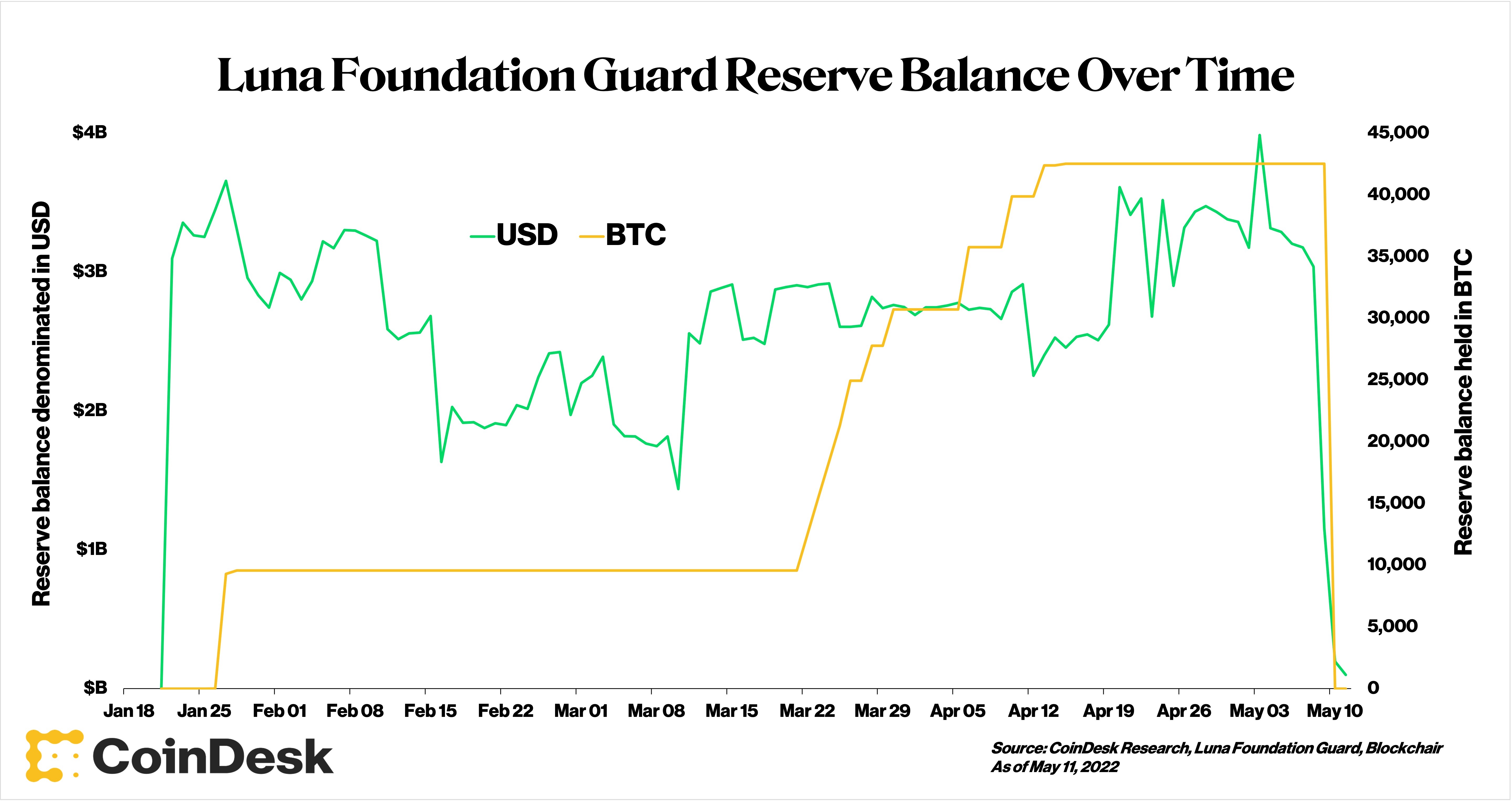 In order to shore up UST’s price, the Luna Foundation Guard (LFG), Terra’s official peg defenders, deployed over $2 billion in its newly formed bitcoin reserves.