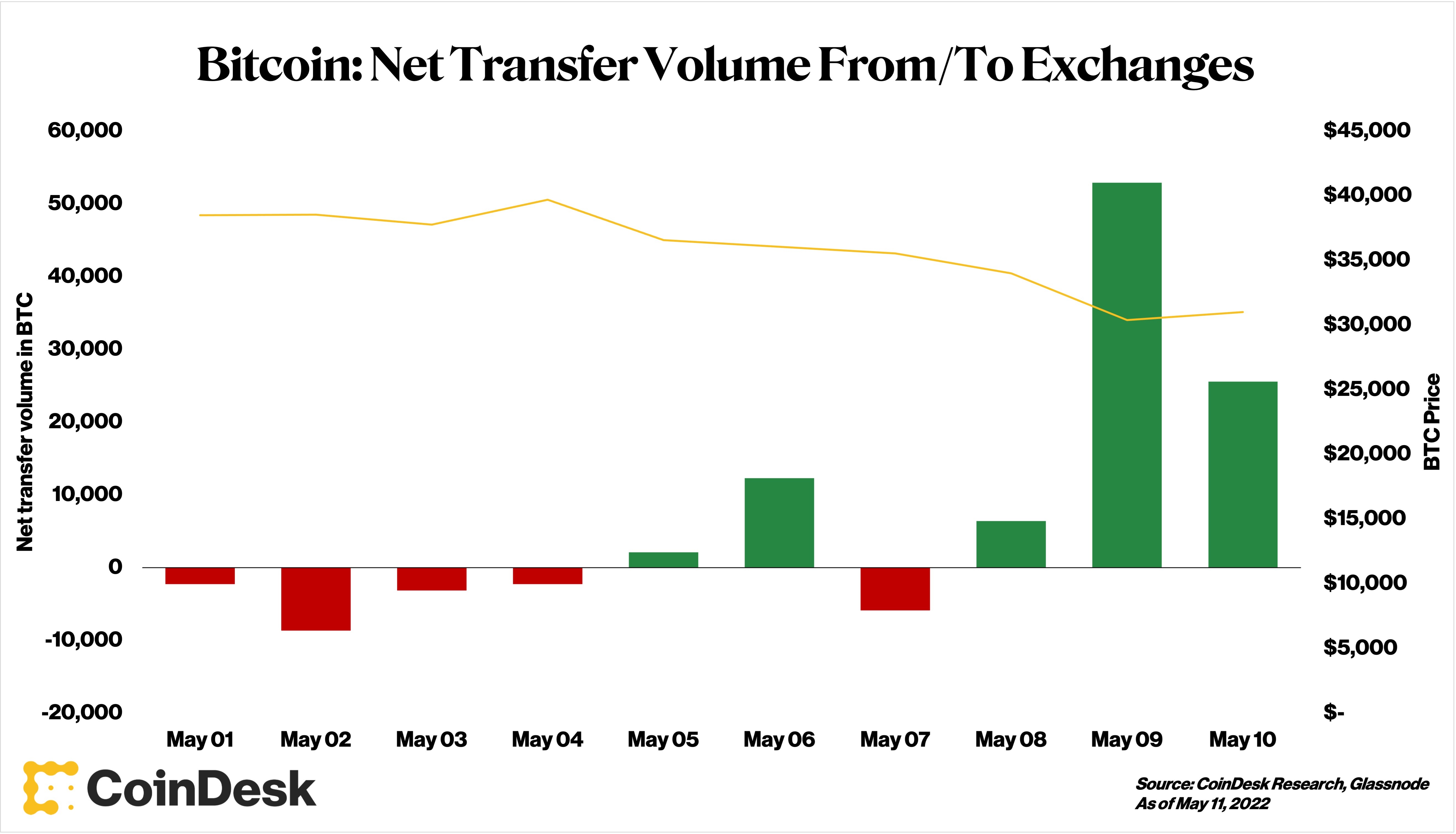 Charts of BTC net transfer volumes tell this story, showing massive volume spikes on May 9 and 10 as Terra’s reserves were first deployed. While Terra doesn’t account for the entirety of these spikes, billions of dollars in freed-up Terra reserves would certainly have made an impact.