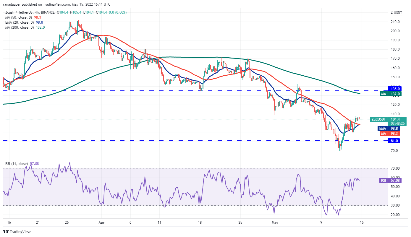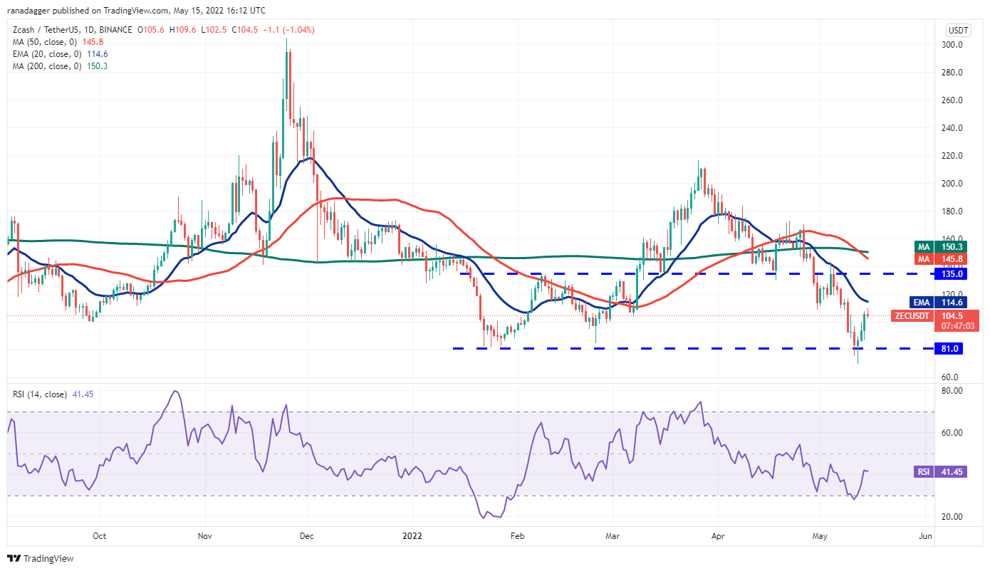 The ZEC/USDT pair could now rise to the 20-day EMA ($114). This level had acted as a strong hurdle during the previous pullback on May 5. Therefore, the bears will try to stall the recovery at the 20-day EMA.