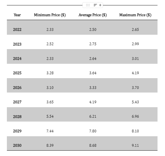 Our Kyber price prediction for 2022 expects a minimum price of $2.33, an average price of $2.50, and a maximum price of $2.65.