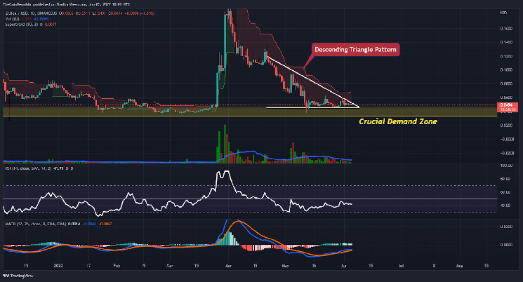 Zilliqa’s price got stuck inside a descending triangle pattern over the daily chart. The token is trying to gather the attention of bulls and falters to adapt to the uptrend momentum over the chart. ZIL coin’s technical indicators point to a long-term bearish trend. Furthermore, the ZIL coin’s bearish momentum is confirmed by the supertrend on the daily chart. ZIL investors should keep an eye on the daily chart for any directional changes.