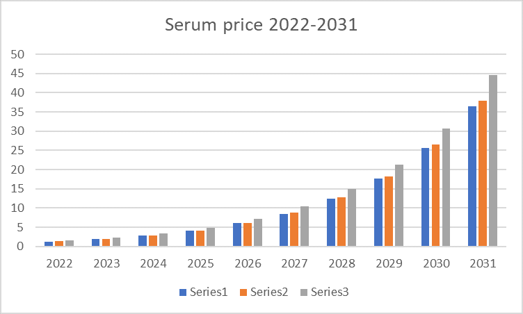 According to the price prediction net, Serum’s market capitalization will be $350,745,995.39 in the following 5 years. The maximum price over the next five years is expected to be $15.25, with a minimum of $13.40 and an average of $13.77 thereafter.They expect the coin to rise from $2.80 in 2022 to just $9.11 in 2025, a climb of 1,350 percent. However, the Serum price prediction for 2030 predicts that the currency could reach $60 by 2030.
