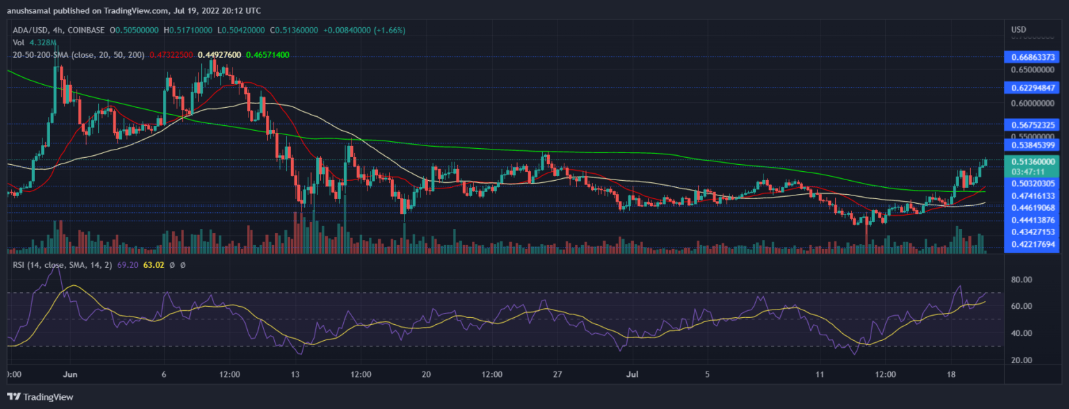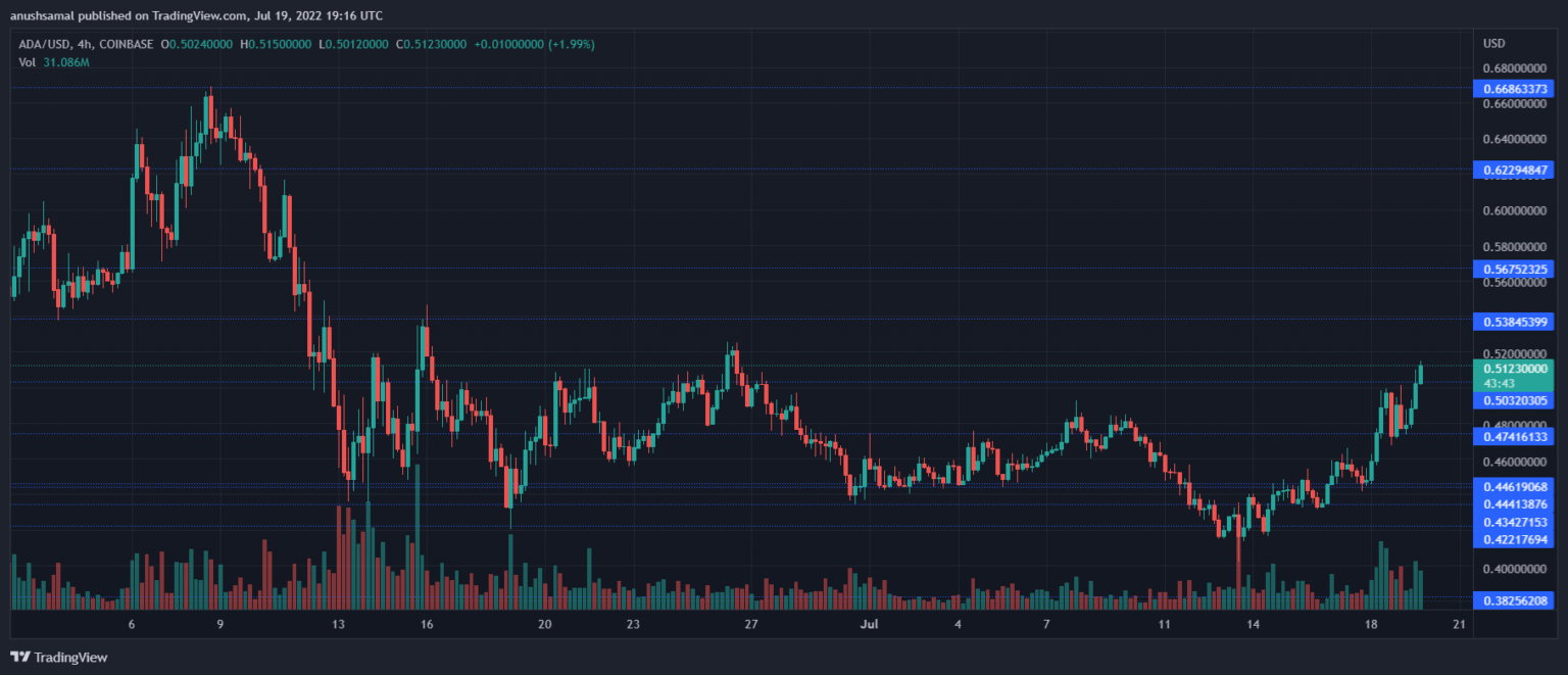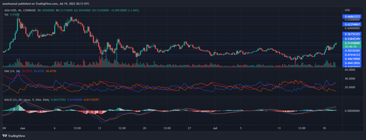 ADA was trading at $0.506 at the time of writing. The coin broke past the $0.50 price mark which it struggled to move past over the last few weeks. Overhead resistance for the coin was at $0.53 but a slight lose in the momentum could drag it down to $0.47.