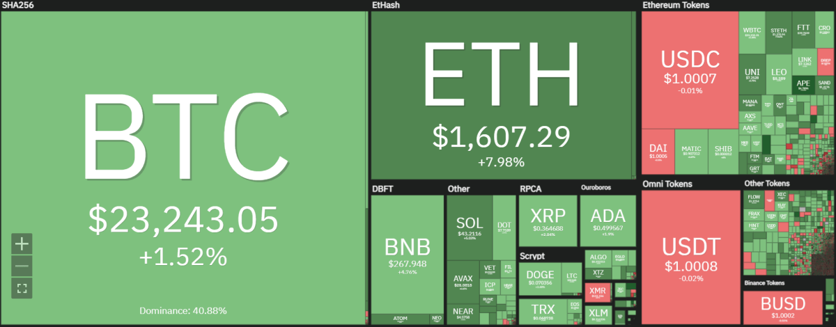 Cryptocurrencies prices heatmap, source: Coin360Aave price analysis shows that the price is currently in a bullish trend as it has broken out of the descending triangle formation. The next level of resistance is at $97.04, and if the price can sustain its current momentum, it is likely to test this level in the near future. However, if the price starts to retrace from its current levels, support is likely to be present at$89.82.