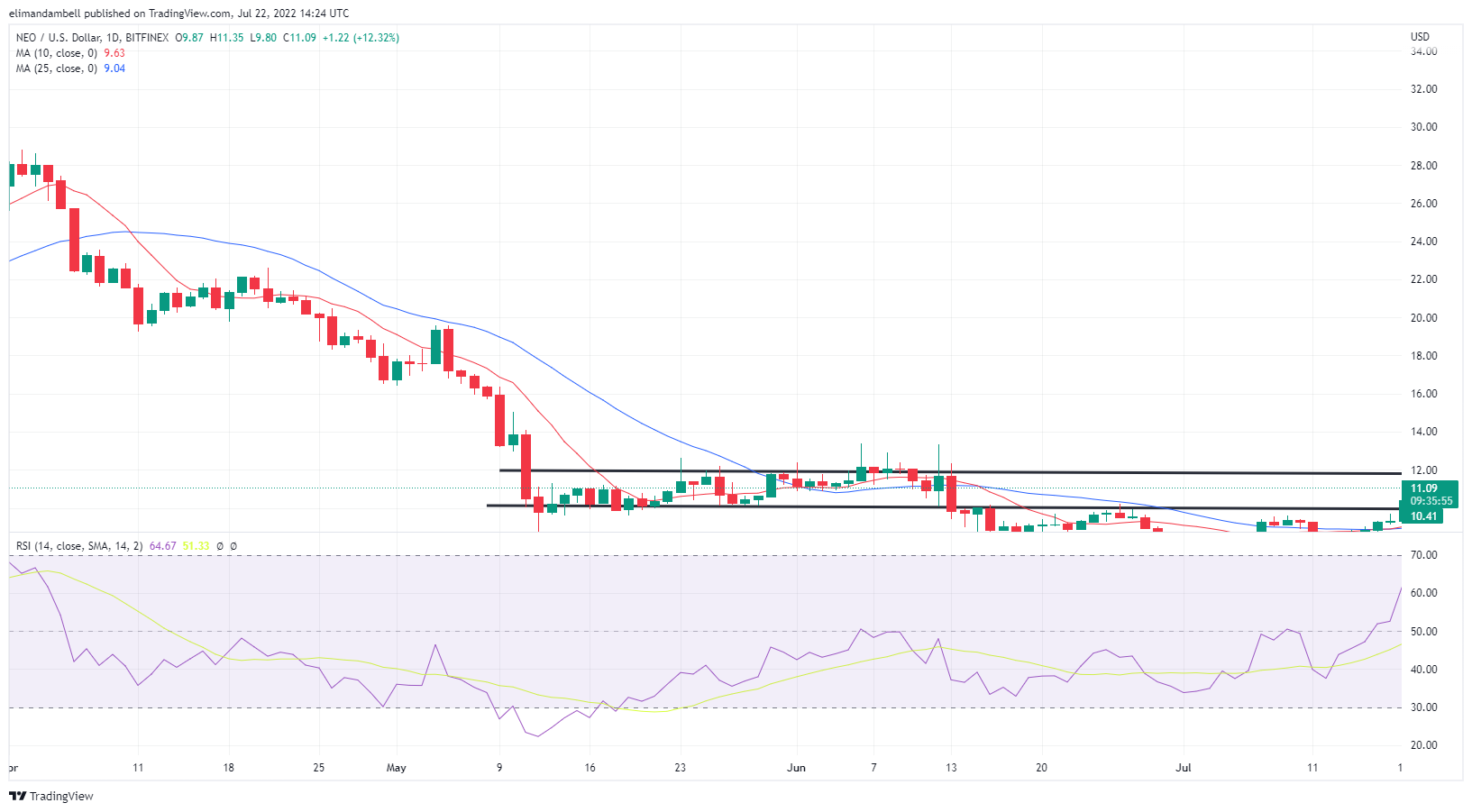 NEO now appears to be heading towards another ceiling, this time at the $12 mark, however bulls may not be able to break this resistance level either.