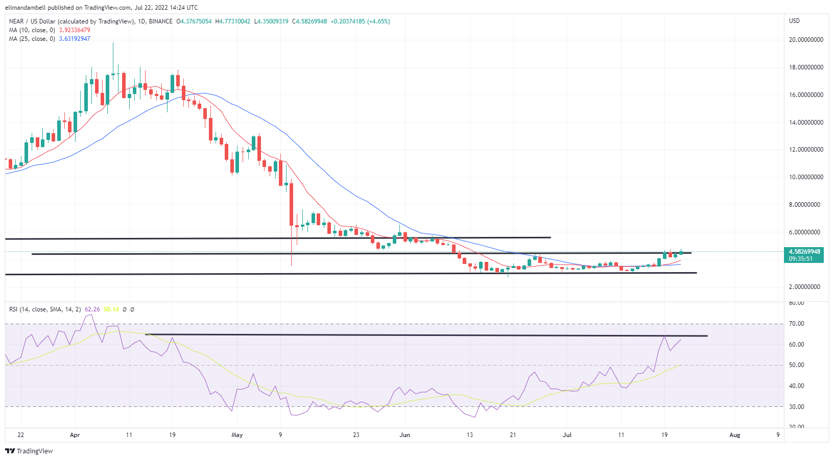 Following a low of $4.17 on Thursday, NEAR/USD rallied to an intraday peak of $4.75 earlier in today’s session.