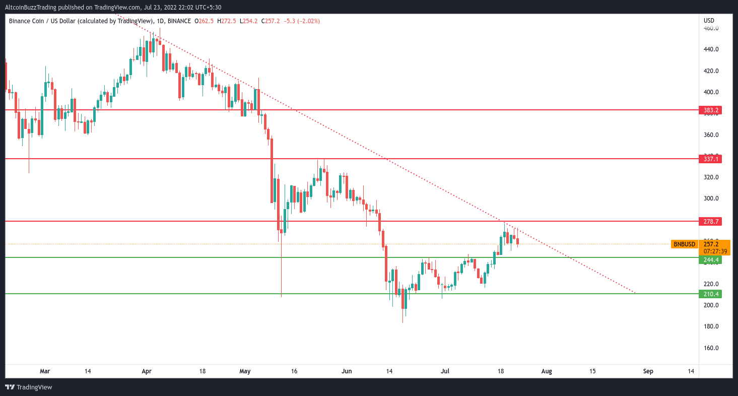 This time, the CEO of Binance is still optimistic about the company’s ability to assist entrepreneurs developing creative, long-term solutions for our sector. At the beginning of the year, the native token traded for more than $500. Since then, the price has decreased by around 60%. Let’s take a look at the BNB price