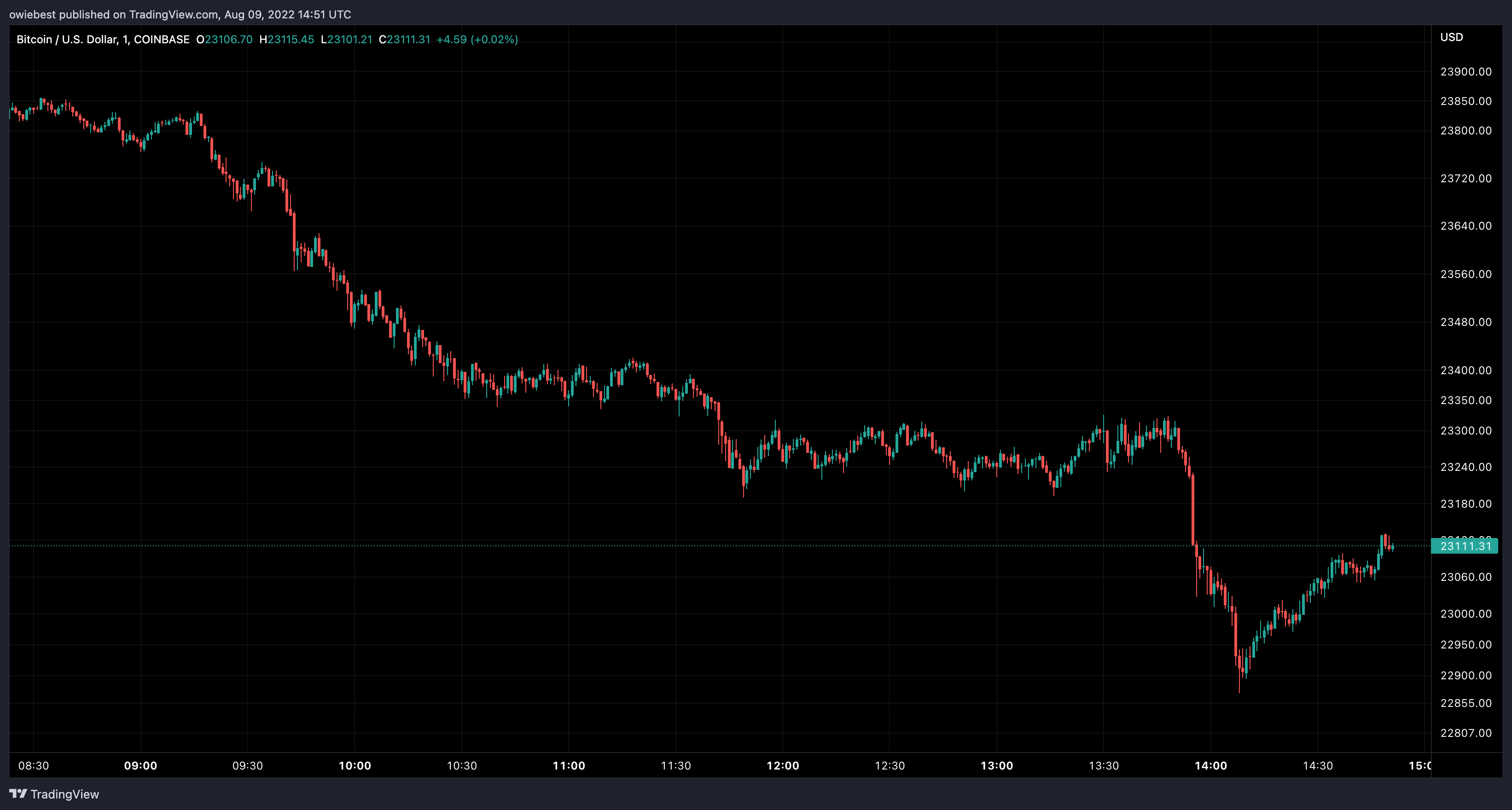 BTC trending above $23,000 | Source: BTCUSD on TradingView.com