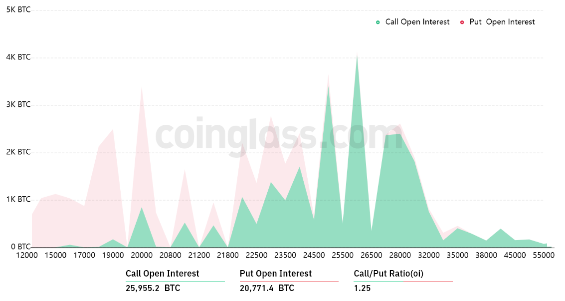 - Between $24,000 and $25,000: 7,700 calls vs. 1,000 puts. The net result favors bulls by $160 million.