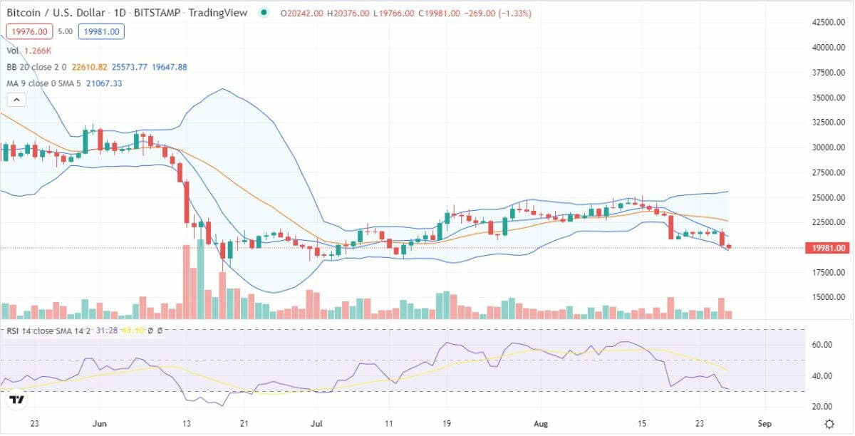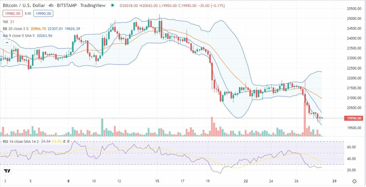Bitcoin price movement in the last 24 hours: Slow and steady decline below $20k