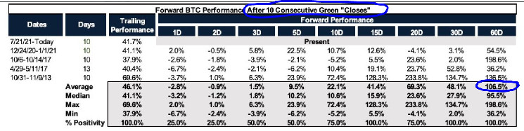 Nunya Bizniz, an independent market analyst, posted the bullish setup on Sunday, noting that each of the cryptocurrency's previous 10-day bull runs has ended up doubling its prices at a later stage.