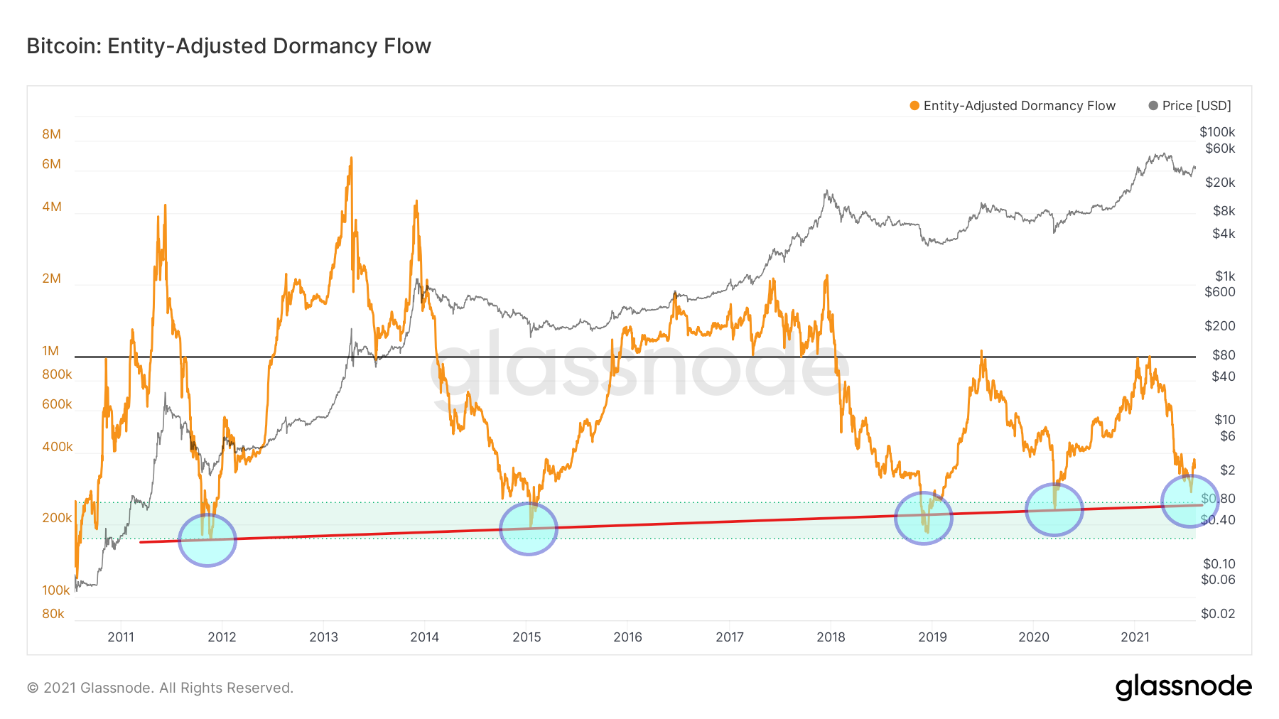 Entity-Adjusted Dormancy Flow / Source: Glassnode