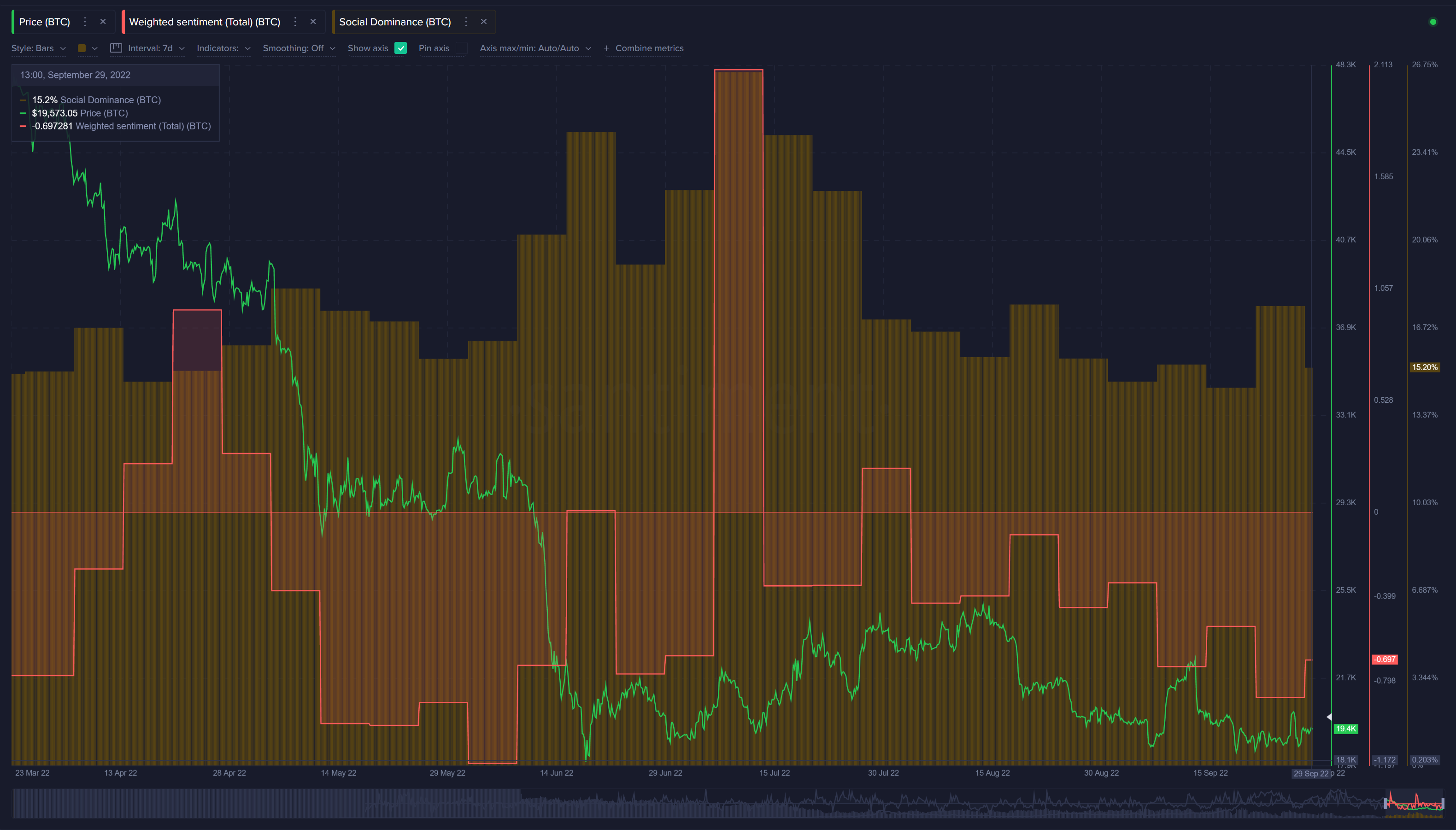 Brian Quinlivan, Director of Marketing at Santiment, noted the trend in a September 30 recap report, pointing out that “the world remains in a very fragile place, and traders aren’t trusting much of anything to rise any time soon.” Crypto has suffered alongside other risk-on assets throughout this year amid soaring inflation rates, interest rate hikes, a global energy crisis, and market exhaustion off the back of the 2021 bull market.