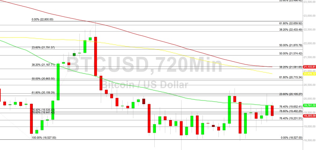 Bitcoin (BTC/USD) traded in a sideways manner early in the Asian session as the pair continued to orbit the 19492.25 level, representing the 78.6% retracement of the appreciating range from 17934.26 to 25214.57. Technical resistance recently emerged around the 20182.72 area during the pair’s ascent, representing a test of the 61.8% retracement of the narrower appreciating range from 18527 to 22800. Upside retracement levels in recent depreciating ranges include the 20476, 21024, 21703, and 21805 areas. Following recent selling pressure, BTC/USD bears are eyeing a greater risk of a test of the 17567.45 low reached in June. Following the recent sharp decline, the 20433 area has emerged as an area of consistent technical resistance and is technically related to selling pressure that commenced around the all-time high of 69000.
