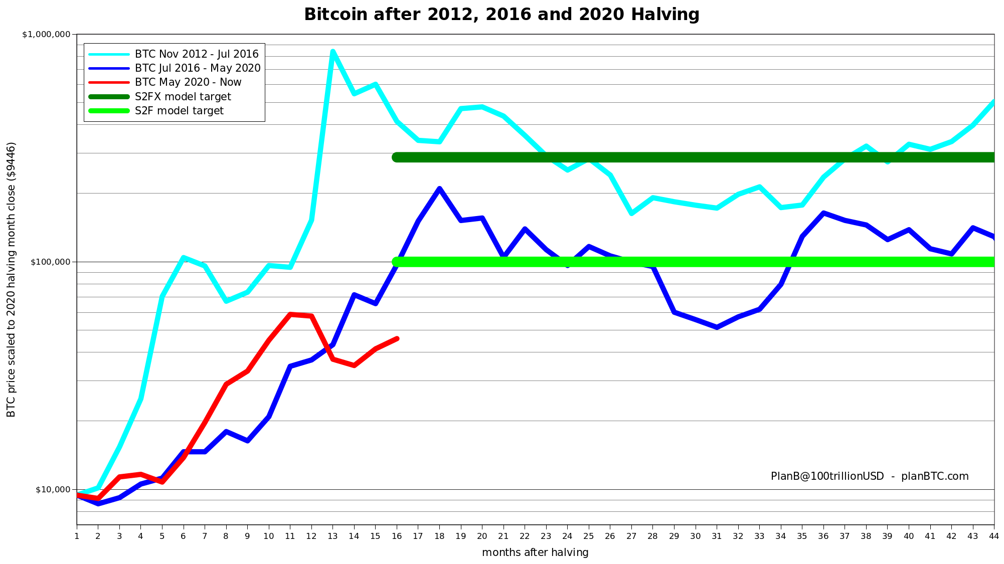 Below is the chart that PlanB posted today. It shows $BTC’s trajectory after the 2012, 2016, and 2020 halving.