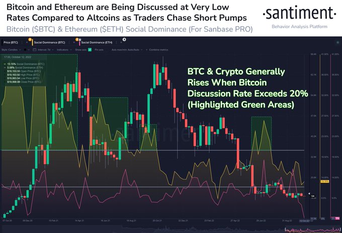 “Traders are chasing short-term pumps right now to salvage losses. Weak hands dropped out of crypto in 2022, and long-term traders are waiting for Bitcoin to begin receiving the spotlight again. When BTC social dominance is high, prices typically rise.”