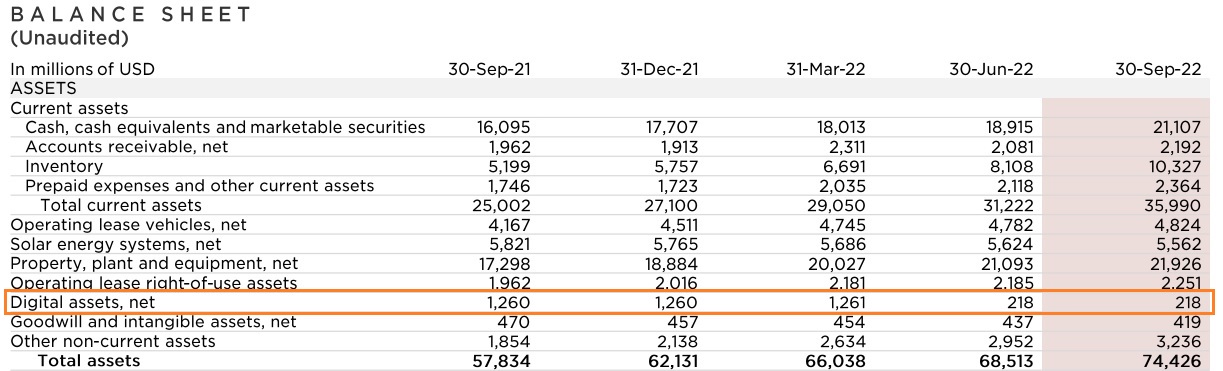 Tesla Inc. (Nasdaq: TSLA) released its third-quarter earnings results Wednesday. The company’s Q3 financial statements show that Tesla did not sell any bitcoin during the quarter. Its balance sheet still shows $218 million in digital assets, unchanged from the second quarter.