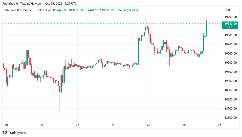 Bitcoin (BTC) returned to local highs at the Oct. 25 Wall Street open as nervous analysts kept an eye on miners.