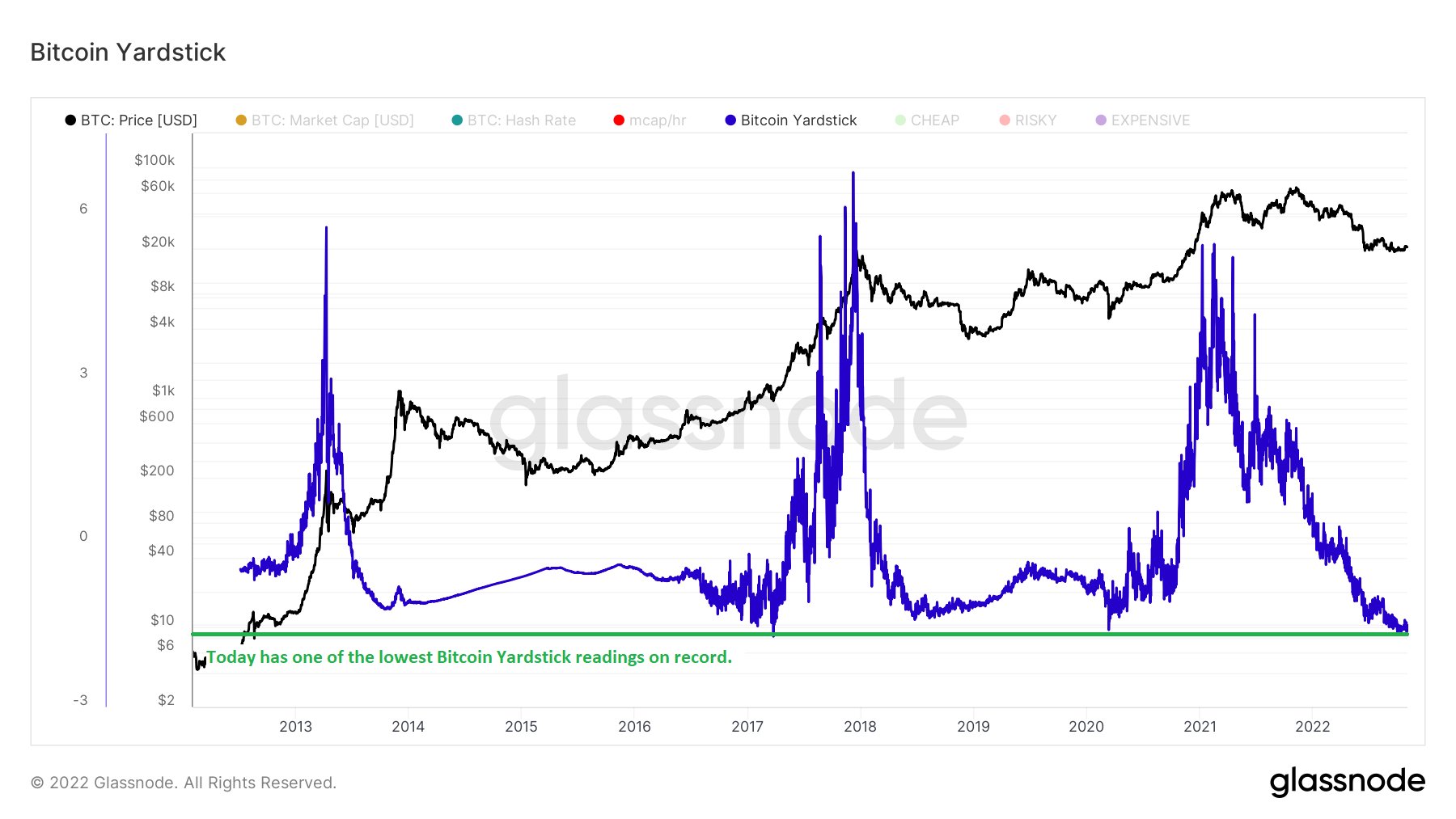 “Today we are seeing the second lowest reading for the Bitcoin Yardstick in all of Bitcoin's history,” Edwards commented.