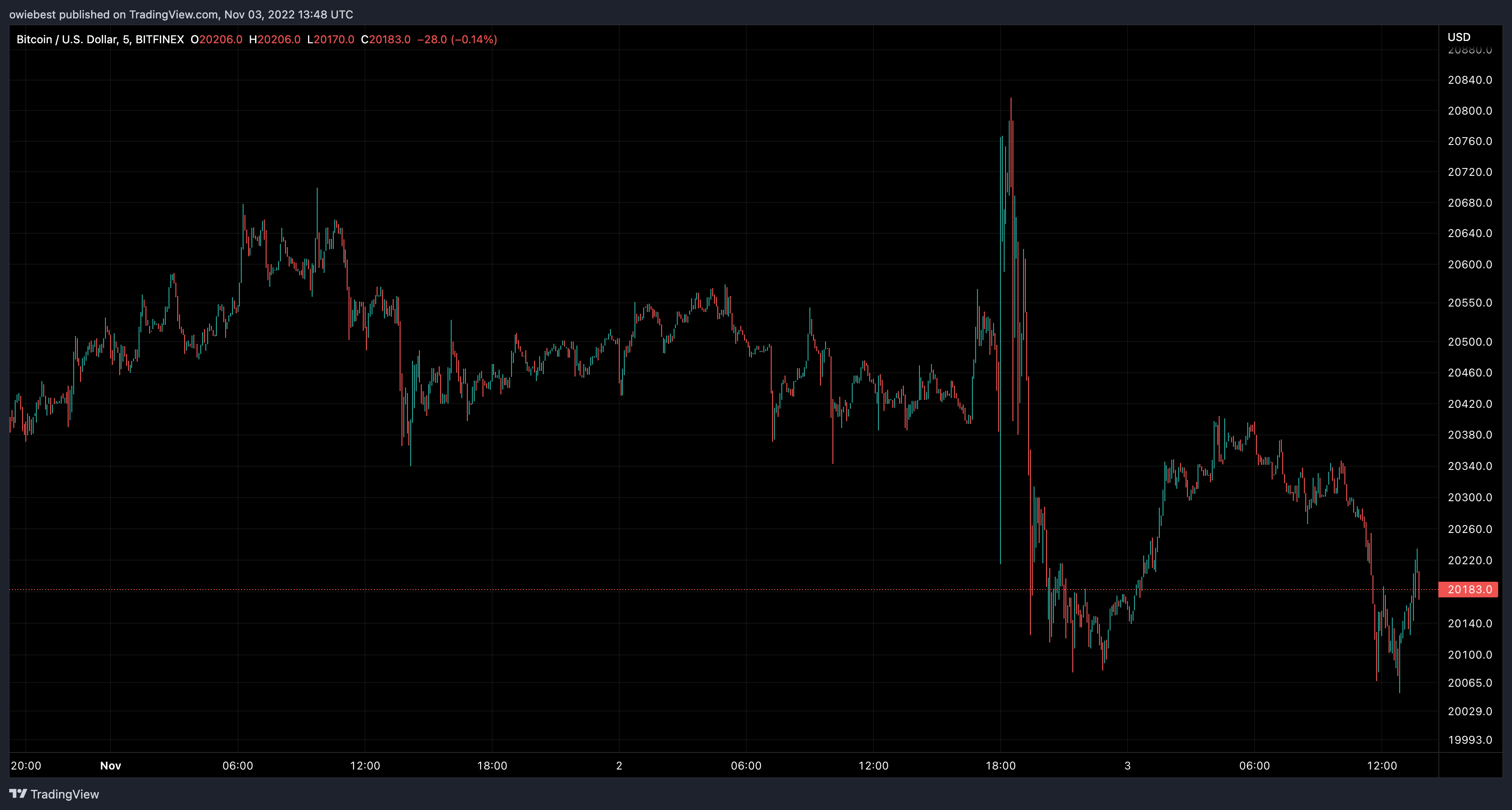 BTC maintains above $20,000 | Source: BTCUSD on TradingView.com