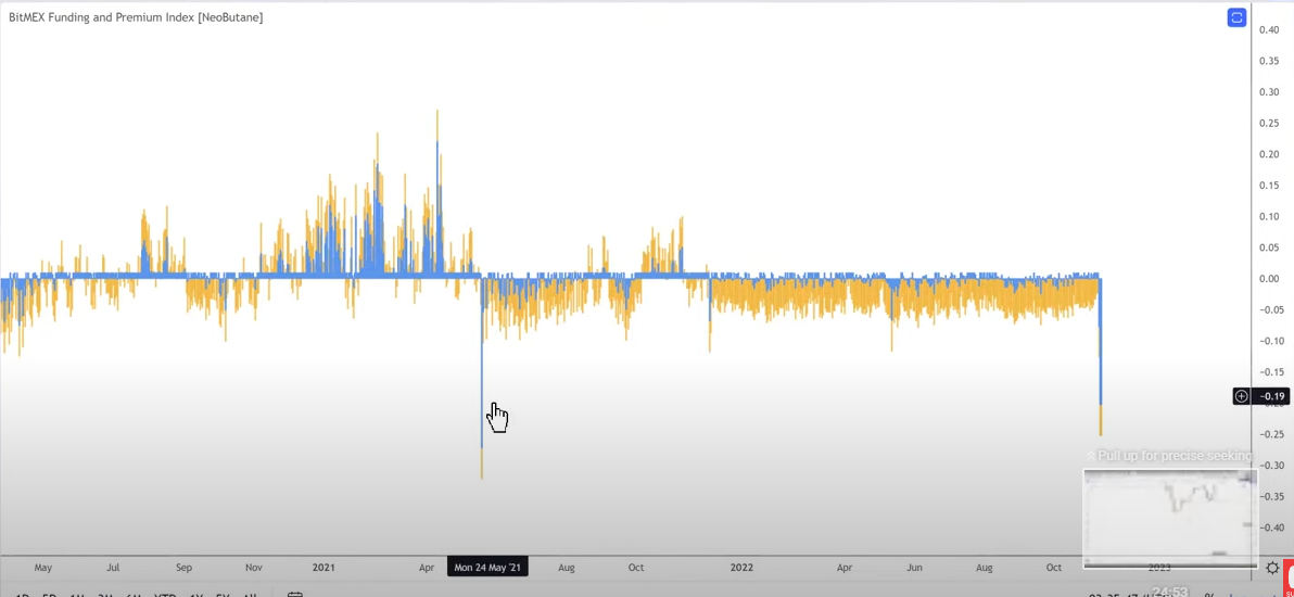 Looking at the trader’s chart, it appears that funding rates are extremely negative, indicating that traders are heavily accumulating short positions. The condition could potentially set up the crypto market for a short squeeze, where traders who borrow units of an asset at a certain price in hopes of selling them for a lower price to pocket the difference are forced to buy assets back as the trade moves against their bias.