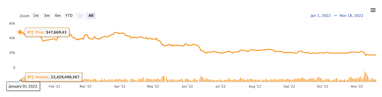 Since Nov. 9, 2022, BTC’s price is close to $4K below that range at $16,664 per unit. Now that there’s less than two weeks left in November, in order for BTC’s price to rise above what it lost, it needs to cross the $20,500 range or higher by Nov. 30, 2022.