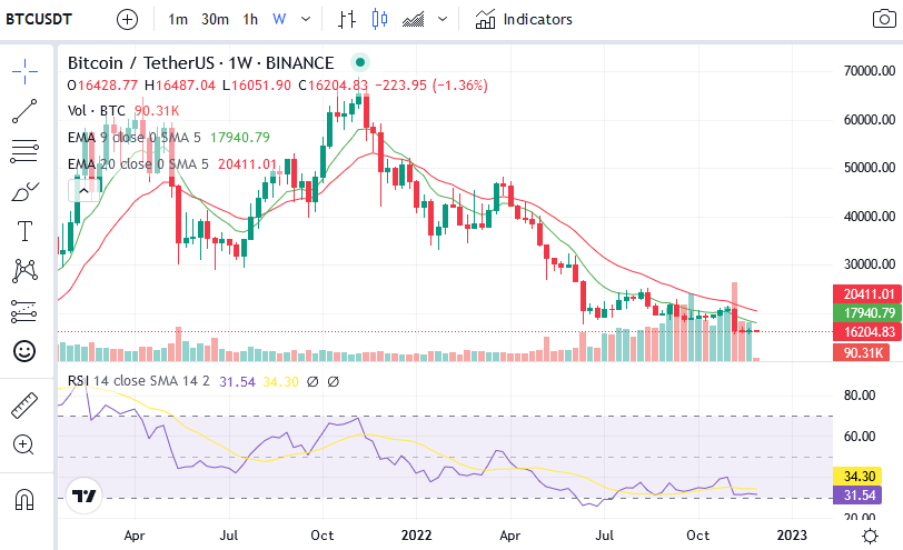 BTC is currently trading at $16,200 after the crypto market leader’s price dropped 2.17% over the last 24 hours, according to CoinMarketCap. Despite this, BTC’s price is still up 0.47% over the last week.