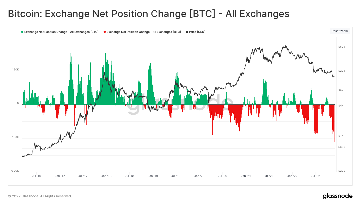 “Last few weeks have been the largest monthly decline in exchange balances in history, peaking at 177.9k BTC/month in withdrawal volume.”