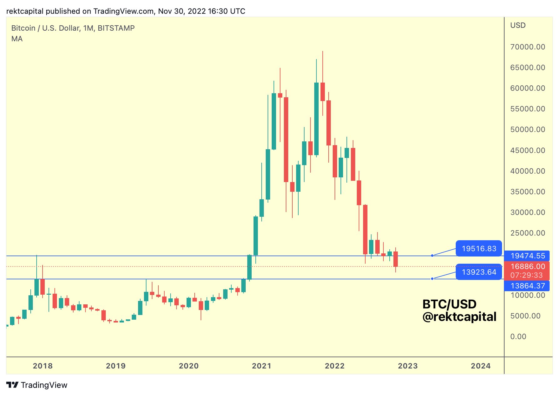 Eyeing potential for upside, trader and analyst Rekt Capital stuck with $19,500 as the ceiling for Bitcoin on monthly timeframes.